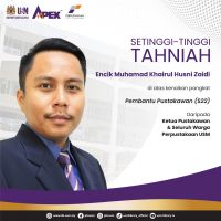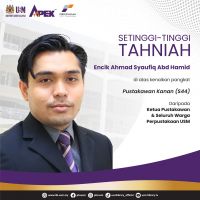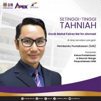 Ketua Pustakawan dan seluruh warga Perpustakaan Universiti Sains Malaysia (PUSM) ingin merakamkan ucapan sekalung tahniah dan syabas buat: