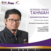 Semoga dengan kenaikan pangkat ini akan memberi aspirasi kepada semua warga PUSM untuk memberikan khidmat bakti yang terus cemerlang kepada Perpustakaan dan universiti secara amnya.