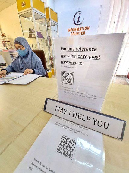 To inquire about any library information, the library has set up an i-Counter. All kinds of information and facilities in the library can be inquired through this i-counter.